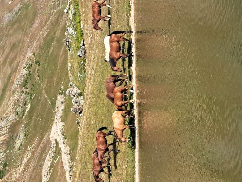Alpin çayırlardan 2740 metre yükseltide yer alan Koruldi gölüne yürüyor ve geri dönüp araçlarla buluşuyoruz.